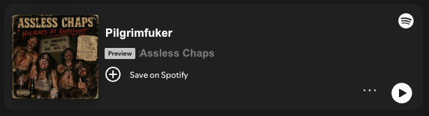One of the best songs ever written: First I fucked a pilgrim cause the turkey moved too fast