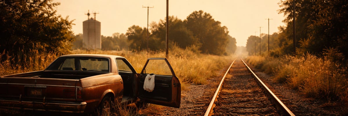 The tracks at the edge of town didn’t go anywhere. They looped back toward the textile mill, a shimmering circle of heat and rusted iron that went nowhere.